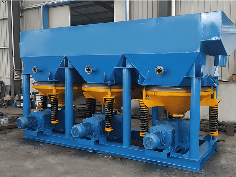 跳汰机的工作原理是在垂直交变的介质流(水或空气)的作用下,利用矿物原料的比重差异实现分层。在跳汰过程中,比重较大的矿物沉降至分选槽的下层,形成重矿物或精矿;比重较小的矿物则浮升至上层,成为轻矿物或尾矿。通过专用的排料系统,这两种不同比重的矿物层被分离,分别排出以获得精矿和尾矿。跳汰机在连续运转中不断接收新原料,实现矿物的持续分层和分离,形成一个连续的跳汰选矿过程。