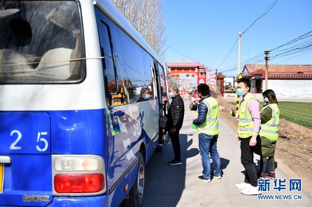 2月22日,復工直通車在山東濟南歷城區(qū)李官莊村接載返崗復工村民。 新華社記者 朱崢 攝