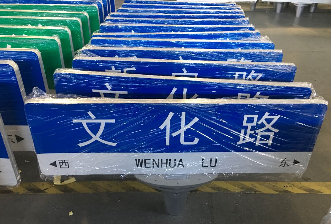 1、市政道路路名牌,俗稱“路名牌”、“城市道路路名牌”、“路名指示牌”等,各城市都出臺(tái)相應(yīng)的地方標(biāo)準(zhǔn),常用的款式為托盤式市政道路路名牌。