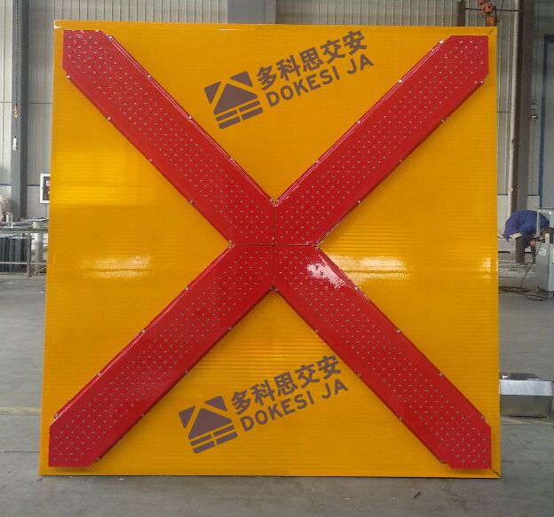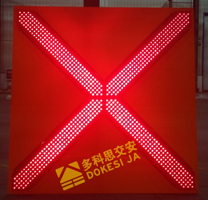 為提升“橋孔禁航標志”的夜間遠距離視認效果,增強標志的動態(tài)警示功能,特采用LED主動發(fā)光技術,設計本“橋孔禁航發(fā)光標志”,在標志的“×”型圖案上,嵌入高亮紅色LED發(fā)光管,根據標志工藝技術要求排布LED發(fā)光管數,可采用密集點陣法,或松散點陣法,但LED發(fā)光管之間的中心間距不得小雨5cm,以保證光效的視覺融和性。