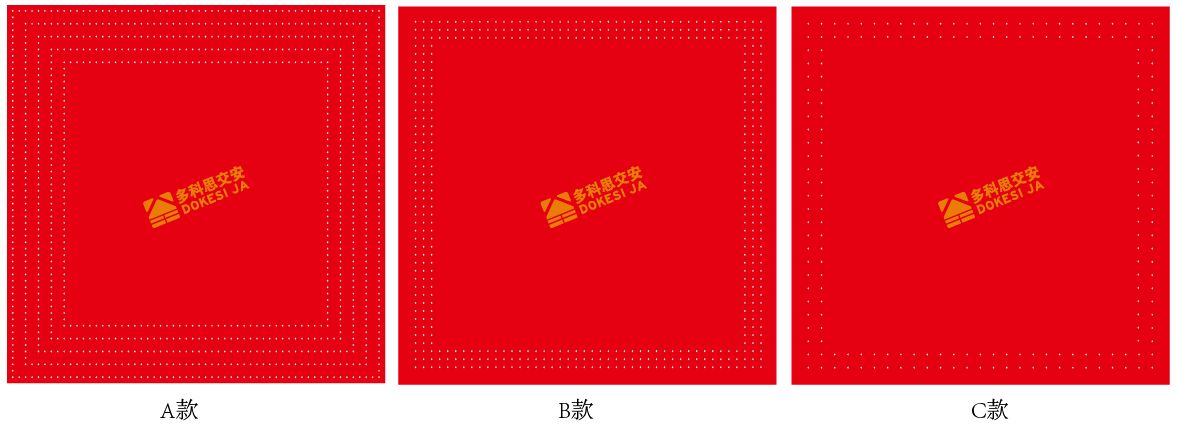 (5)標志版面的LED安裝圓孔采用激光數(shù)控設備打孔,圓孔直徑規(guī)則規(guī)律無偏差偏位,打孔處反光膜邊緣應平滑、整齊、無毛刺。根據(jù)需要,給三種布點方式: