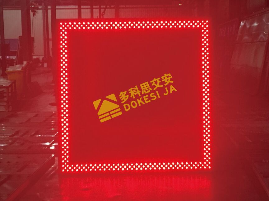 通航橋孔左側標志,其整體版面為紅色實心正方形標牌,尺寸通常采用2000mm*2000mm規(guī)格,主要安裝設置于橋梁下方通航橋孔的左側位置,用于標識橋孔下方航道左、右側邊界,指示船舶按照規(guī)定的航道靠右側通行,禁止駛入航道的左側位置,以免發(fā)生船舶碰撞事故的危險隱患,其對應的標志為“通航橋孔右側標志”。為提升“通航橋孔左側標志”在夜間的警示效果,和遠距離的可視性,標志已逐步升級為主動發(fā)光功能,在標志的四個側邊,等距離嵌入高亮LED發(fā)光管,通過內(nèi)部的精密電路,實現(xiàn)標志在夜間的動態(tài)閃爍功能。產(chǎn)品生產(chǎn)老化測試照片如下: