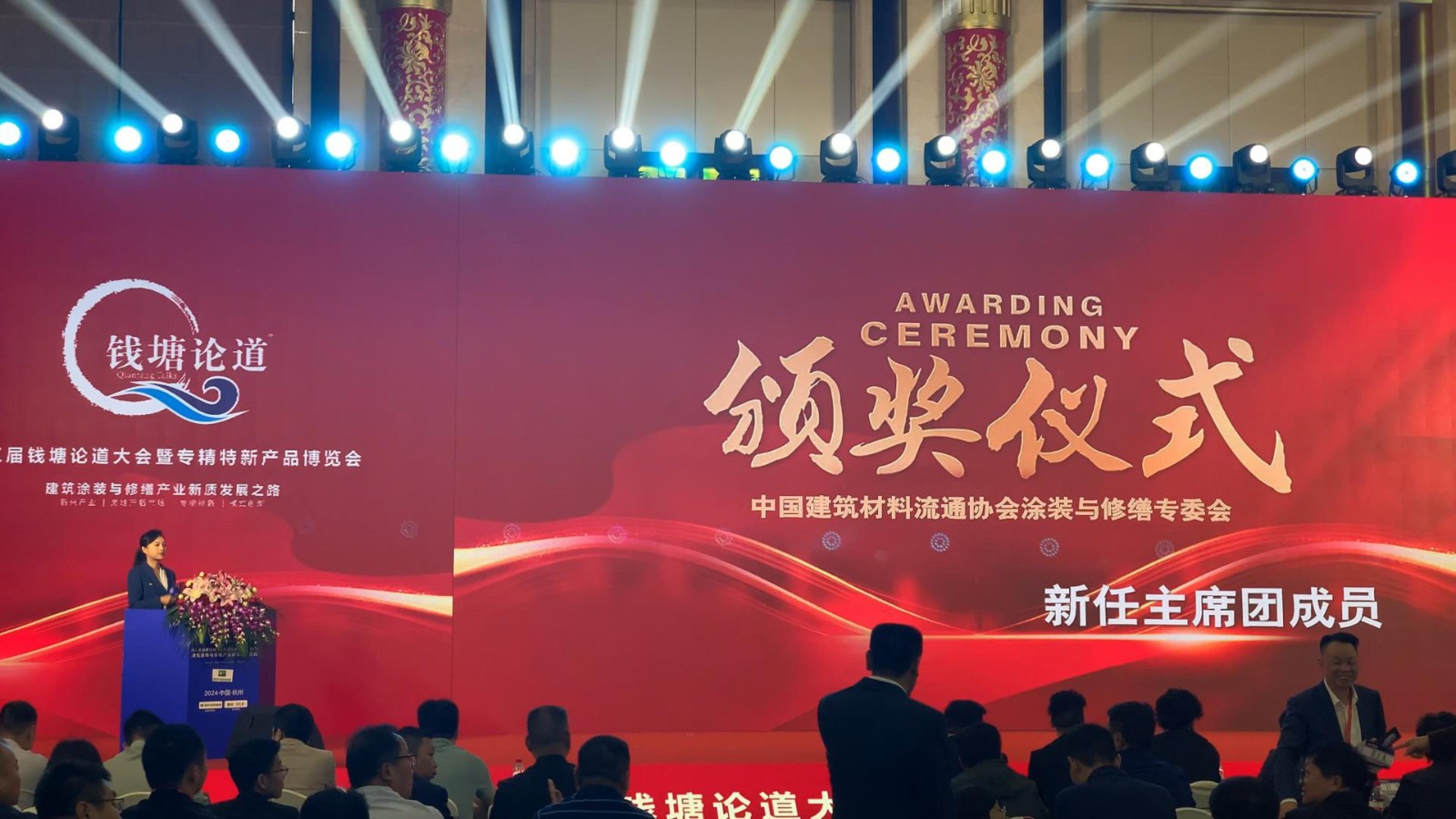 中國建筑材料流通協(xié)會會長秦占學(xué),杭州市政協(xié)辦公廳一級巡視員杜國忠,中國房地產(chǎn)業(yè)協(xié)會產(chǎn)業(yè)協(xié)作委員會副秘書長侯敬杰,杭州市涂層材料產(chǎn)業(yè)協(xié)會會長張增強等領(lǐng)導(dǎo)嘉賓,以及來自建筑涂裝行業(yè)、涂料行業(yè)、地坪行業(yè)、砂粉行業(yè)、修繕行業(yè)、保溫行業(yè)、智能設(shè)備行業(yè)的眾多行業(yè)領(lǐng)袖、專家學(xué)者及企業(yè)代表300多人出席大會,共同探討“中國建筑涂裝與修繕產(chǎn)業(yè)的新質(zhì)發(fā)展之路”。