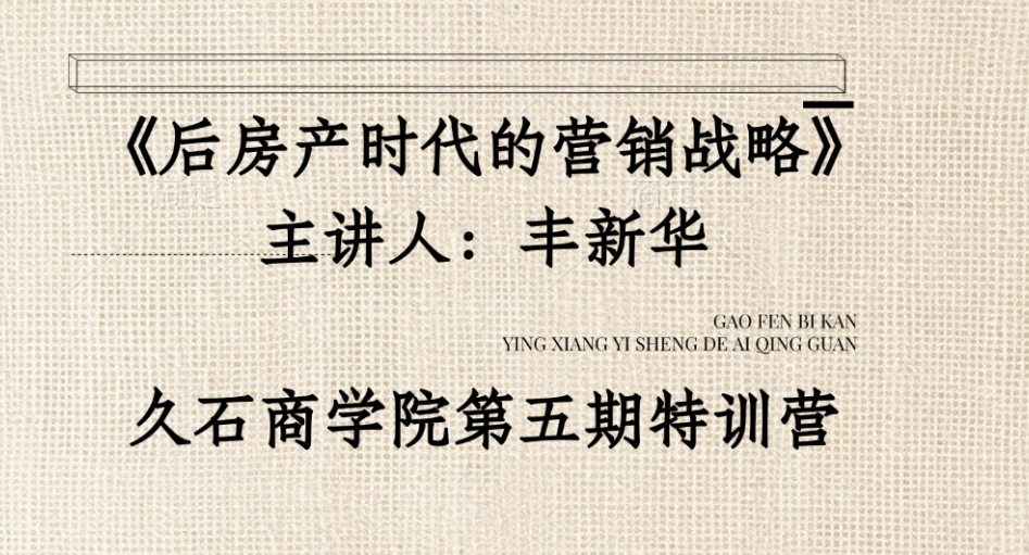 本次久石商學院第五期培訓內容豐富、觀點深刻,為學員們帶來了后房產(chǎn)時代營銷戰(zhàn)略的全新視角和實用建議。及時轉換思路,在市場趨勢下乘風而行、乘勢而上,希望早日實現(xiàn)后房產(chǎn)時代建材行業(yè)的逆襲!