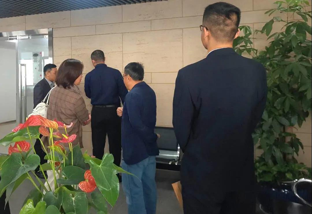 董事長豐新華陪同杭州藍綠鄉(xiāng)墅各位領導參觀了產品展示墻,使他們對貼片石效果有了一個更直觀的感受。